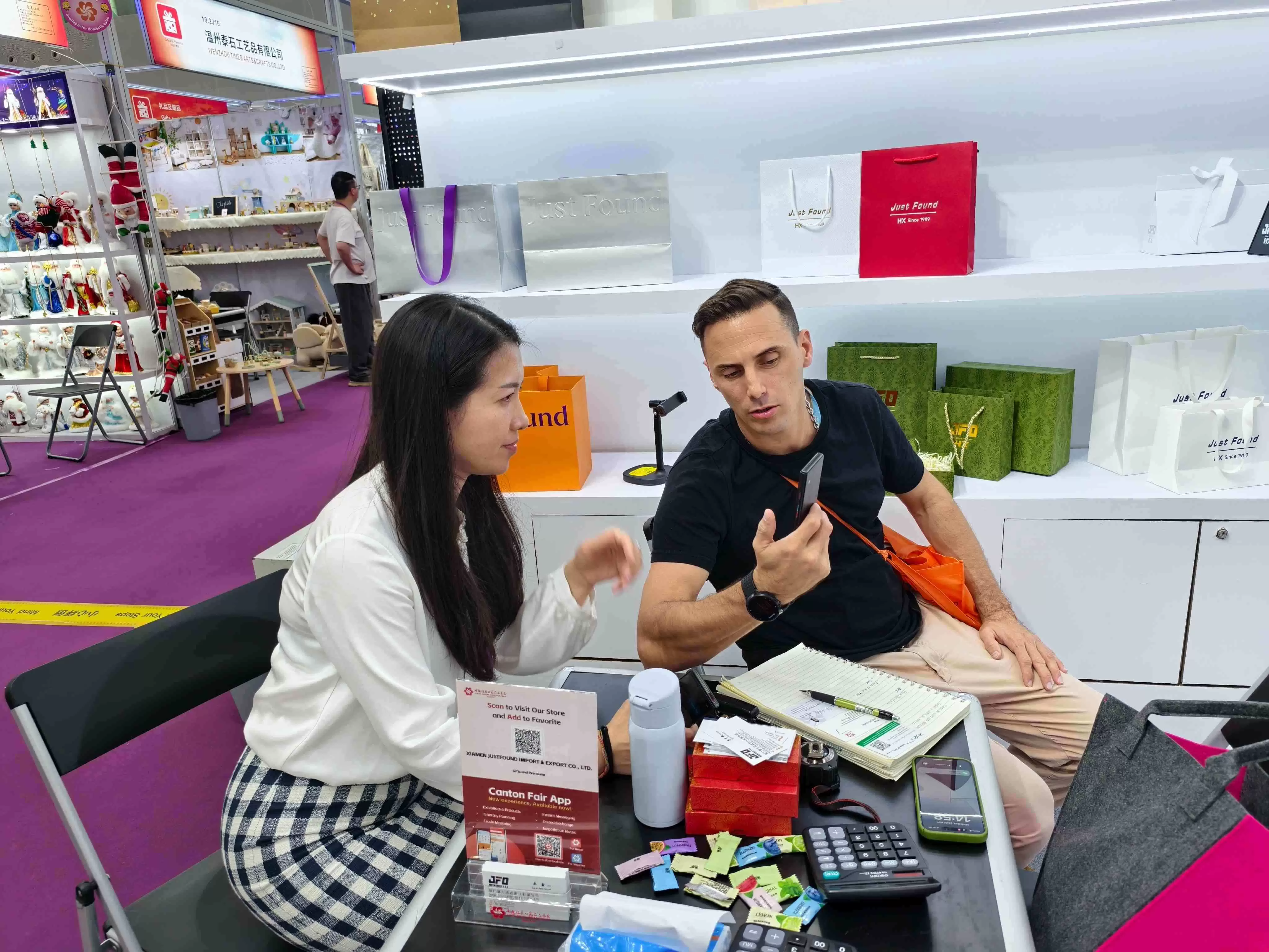 19.2. SALON'daki J35-36 numaralı standda, Xiamen Hengxing Color Printing Co., Ltd. standı birçok uluslararası alıcının gelip danışmasını sağladı. Avrupa, Amerika, Güneydoğu Asya ve diğer bölgelerden gelen alıcılar, şirket tarafından sergilenen çevre dostu kağıt torbalara ve yaratıcı kağıt kutu örneklerine büyük ilgi gösterdi ve yerinde birkaç iş birliği niyetine vardı.
